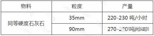 為了驗證這一制砂原理,鄭州鼎盛公司將同等硬度的90mm和35mm的兩種石灰石骨料進行試驗,結果如下:
