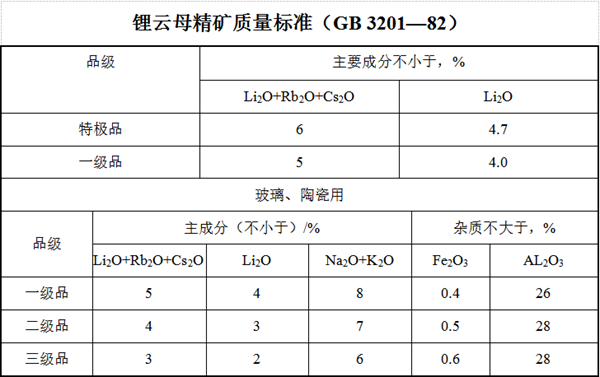 (1)該標準適用于經過選別富集而獲得的鋰云母精礦,供提取鋰及其化合物和玻璃、陶瓷工業用。