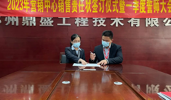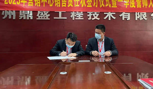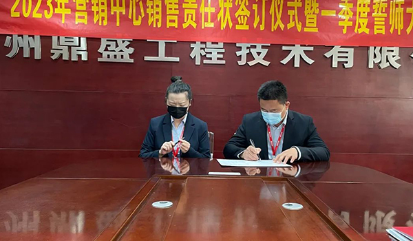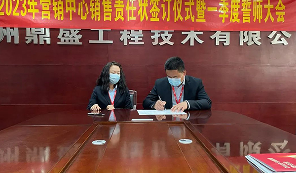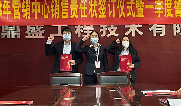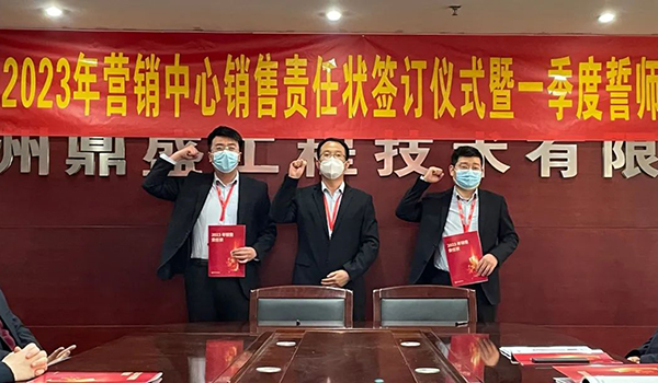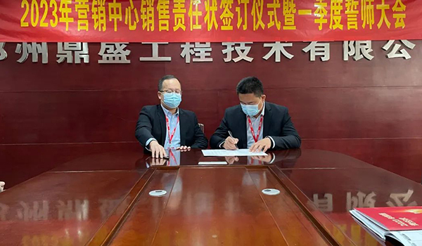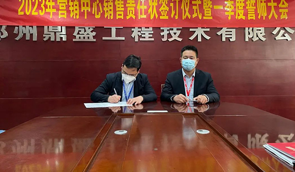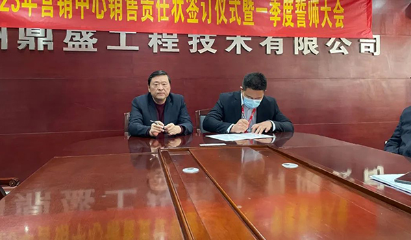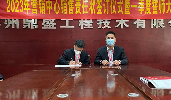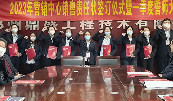 蓄力量、育希望、創(chuàng)輝煌。近日,鄭州鼎盛為確保2023年度銷售工作取得突破性進(jìn)展,再上一個(gè)新臺(tái)階。營(yíng)銷中心全體齊聚公司總部,舉行“2023年?duì)I銷中心銷售責(zé)任狀簽訂儀式暨一季度誓師大會(huì)”,公司主要領(lǐng)導(dǎo)出席儀式。