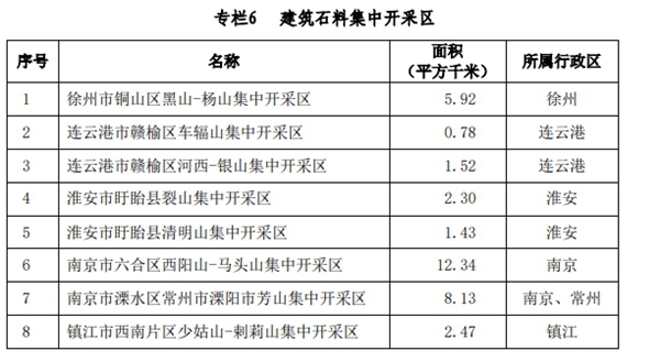 (二) 建筑石料集中開采區在徐州、連云港、淮安、南京、鎮江和常州等資源有保障、 開發有基礎的地區劃定 8 個建筑石料集中開采區,力爭形成數個年生產規模在 500 萬噸以上的建筑石料開采基地。落實國土空間規劃管控要求,鼓勵引導集約化、規模化開采建筑石料。建筑石料集中開采區內礦山必須按照綠色礦山標準要求建設。