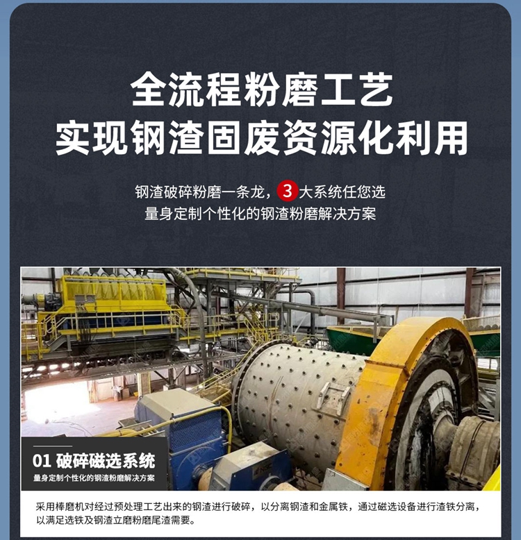 針對預處理后的鋼渣提出了破碎、粉磨、超細磨的一條龍綜合利用方案,實現鋼渣固廢的資源化再利用,進一步減少水泥摻合料的碳排放。