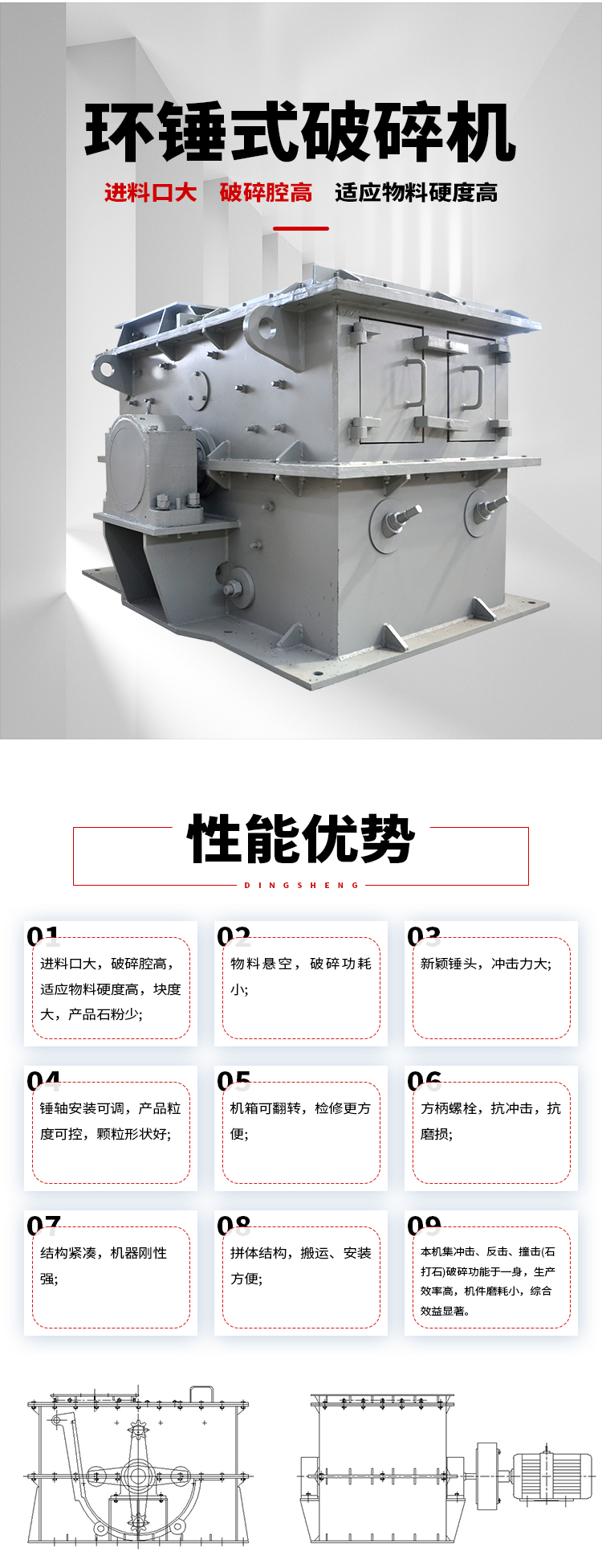 物料懸空、破碎功耗小
